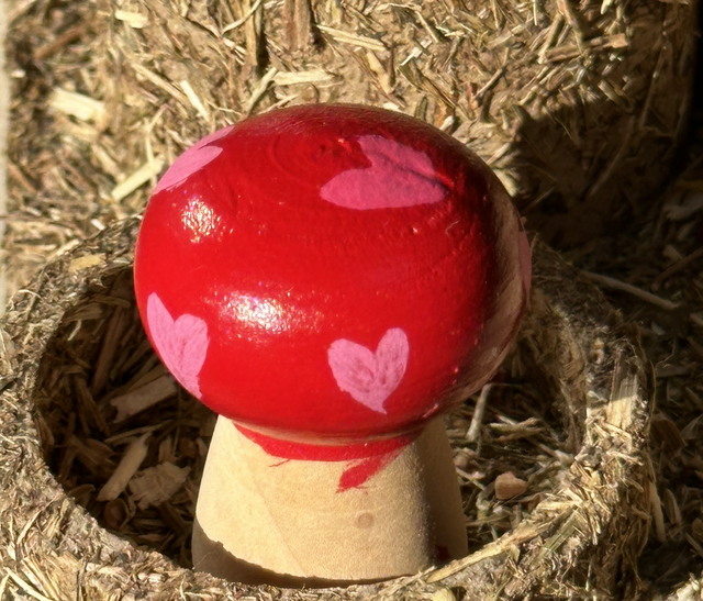 Hand painted wooden mushrooms