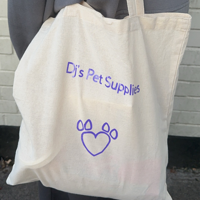Our mystery tote bags come with a Dj’s Pet Supplies tote bag filled with goodies worth over £20